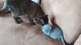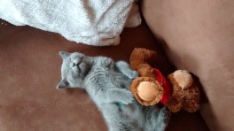 Emil ist ein BKH Kater in der Farbe blau. Emil ist mit Dafne zusammen